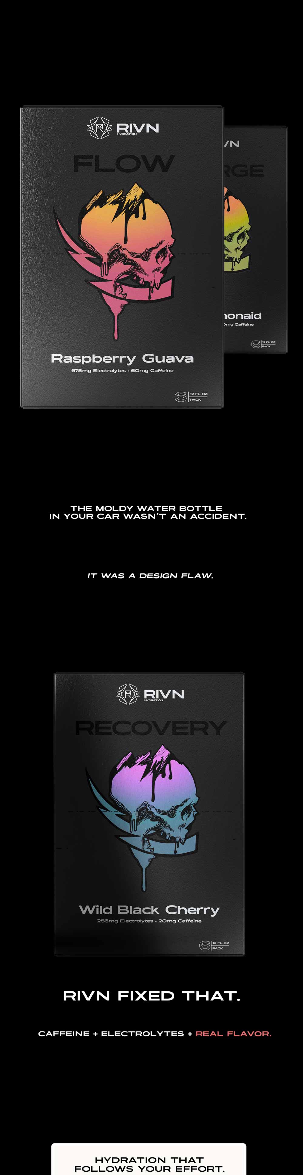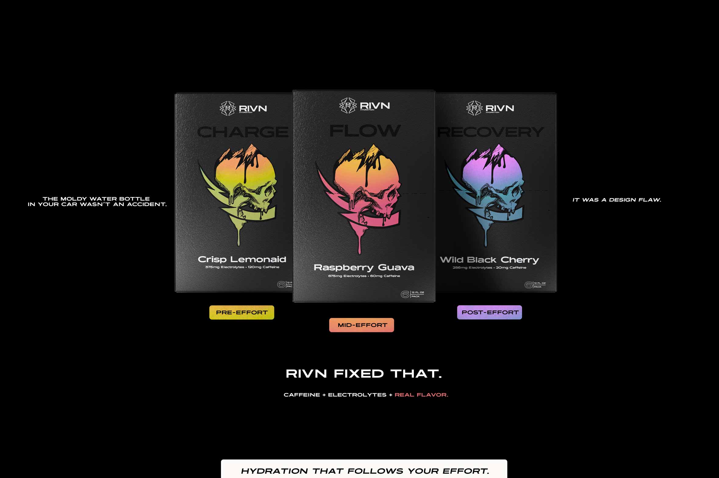The RIVN System is a complete toolkit that changes with your body's needs. Each pack contains a precisely timed formula for every phase of your effort: