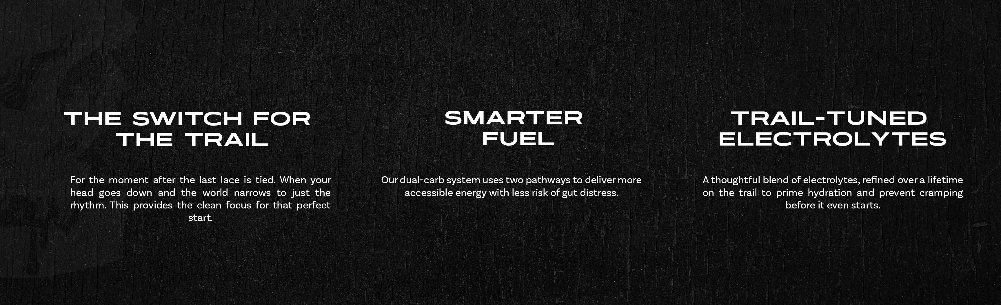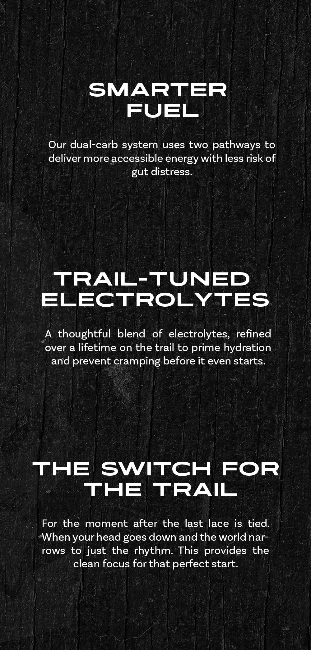 Most brands take a one-size-fits-all approach to electrolytes. We don’t. Our system is built on an “Electrolyte Ladder,” a purposeful profile that changes with each phase of your effort to give your body what it needs, when it needs it. It’s not just science—it’s a story that maps to real moments on the trail.